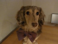 はじめまして!2007年7月7日生まれの ナナ デス。ホテルのお母さんに”ホテルの看板犬になるのよっ!”って,言われたので只今研修中デス。それで”今年はこのリボンでね”って着けてくれたの。似合ってる?