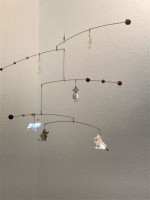 ホテルのお母さんのお友達、藤井さん手作りのモビール!ムーミンママからミーまでとりどり!ホテルの一階どっかに飾ってあるの!気おつけてさがしてみてね‼