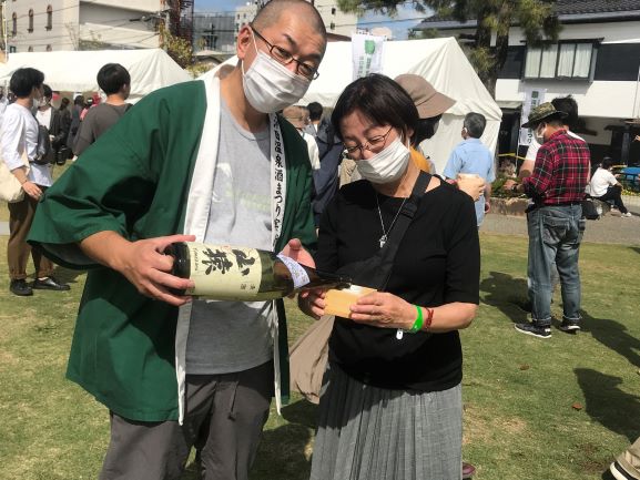 酒まつり実行委員長にお酒注いでもらいました!