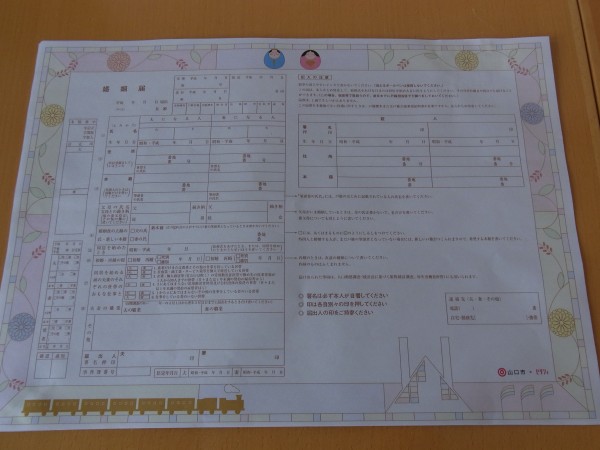 ホテルのお嬢さんがお嫁に行くので、山口市役所に”婚姻届け”をもらいにいって